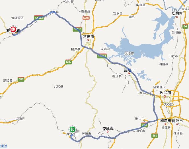 冷水江去張家界自駕車自助游線路圖(省道+高速):