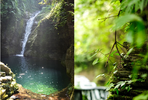 十八潭總名。稍作休憩,我們開始奔赴東線的景點(diǎn)。東線主要是以十八潭為主,下游有4潭:合潭、梳妝潭、魚潭、黑潭;中游有9潭:換衣潭、美人潭、石蛙潭、姊妹潭(3個)、情侶潭(2個)、二龍搶珠,上游有5潭:鬼谷神功(2個)、幽潭、落銀潭(彩虹潭)、路邊潭。十八個潭深淺不一,淺則1米以上,深則4米左右,形狀各異,有的月牙形,有的豬腰狀,形狀不規(guī)則,石壁上水沖成潭,真是鬼谷神功,此處水質(zhì)細(xì)膩,加之綠林映襯,水色碧綠見底,猶如十八顆翡翠石鑲嵌在山林之間,涓涓溪流晶瑩剔透,飛流直下的瀑布,氣勢磅礴,蔚為壯觀, 下游的4潭,合潭、梳妝潭、魚潭、黑潭。合潭是仙女峽谷與十八潭的交匯處;梳妝潭的水清如明鏡,又因為潭兩側(cè)石頭的封閉,使這面鏡子靜止不動,很方便梳妝,照鏡子。在梳妝潭周圍,有一種植物屬于紅豆杉系列,它的形狀好似梳子,可以用來梳頭。魚潭可不能望文生義。魚潭,是在冬天的時候,所有的魚都聚集在這里過冬,除此之外,這個潭水淺見底,冬天魚苗聚集,是捕魚的好季節(jié)。黑潭,水深不見底,所以叫黑潭,F(xiàn)在已經(jīng)看不見梳妝潭、魚潭、黑潭了,你猜為什么?建水庫,建水上樂園,淹沒了。 斷魂石的傳說。三國時期,高氏和蕭氏一對夫妻春節(jié)忙活,遇上了天門垮眼,受余震襲擊,打死了丈夫蕭氏。高氏思念丈夫,淚哭不斷,結(jié)果摔死潭中。人們經(jīng)常還能聽到哭聲傳來,不敢單獨(dú)行走,需成群結(jié)隊。后人為了鎮(zhèn)邪,雕刻一條蜈蚣驅(qū)趕哭魂,多年后,蜈蚣成精,天上打雷,巖石發(fā)光,遭雷所劈,成了斷魂石。 和尚姥,也就是丹灶峰,天門十六峰之一。相傳此峰為仙人化身,赤松子曾在此煉丹,許多詩人在此留下了美妙的詩篇,明代葉守禮《丹灶峰》: 懸崖峭壁隔塵寰,上有仙人學(xué)煉丹。 煉得丹成鶴已去,獨(dú)留丹灶在峰巒。 意思是說,在這險峻秀麗的山峰上,赤松子潛心煉丹,不受塵世干擾,身心沉醉于秀美的山間,沉溺于丹藥的煉制之中。作者很是羨慕那種與世隔絕的超脫,那種執(zhí)著于自我理想的瀟灑,你羨慕不羨慕? 竹林叢生。我們要學(xué)習(xí)竹子的精神,中空、謙卑;我們要學(xué)習(xí)竹子的精神,抱團(tuán)生長;我們要學(xué)習(xí)竹子的精神,破土而出,節(jié)節(jié)高。 向家塔。打造農(nóng)耕養(yǎng)生游的地方。種田、種菜、種花,農(nóng)家餐館。 爛泥巴根。爛泥巴根和馬桑樹是同科,是這里獨(dú)特的一種樹。馬桑樹亦稱“千年紅”、“馬鞍子”,屬落葉灌木,馬桑樹多枝叢生,一簇一簇的,枝葉像傘蓋,因此“馬桑樹兒搭燈臺”。春風(fēng)一吹,滿山的馬桑樹、爛泥巴根就吐翠滴綠,顯示出強(qiáng)勁的生命力。打油詩一首: 青青枝條四方走, 肥肥大葉落上頭, 身在路邊無人問, 冬去春來樂悠悠。 秋天死亡,春天長勢更加茂盛,它的新生是通過死亡實現(xiàn)的。山川如此,植物也是如此,這里的一草一木無不透露著道家那種齊生死、等貴賤的精神。 這叫“常道”亭,“道可道,非常道”,據(jù)說是白狐與劉海相遇的地方。吊橋。 十八潭各具特色。 中游有9潭。第五潭叫換衣潭。巖石聳立,霧氣氤氳,巖壁上布滿水汽,猶如雨下。又因過道狹窄,行人需彎腰通過,未免雨水打濕衣裳,在此就要脫下身上衣物,通過后在第六潭再穿上。因此第六潭又叫美人潭,很幽深神秘的。第七潭叫石蛙潭,水淺,又比較平穩(wěn)、安全,春天產(chǎn)籽。余音回響,猶如蛙鳴,給人“聽取蛙聲一片”的錯覺。 對面巖壁叫“臘肉鋪”,那條自上而下的溪流叫“酒長流”,客人來了,咱土家人熱情,臘肉下炕,苞谷燒,喝兩口! 第八潭第九潭叫情侶潭,比較隱蔽,他倆靜悄悄地談著情話,我們快走,不要打攪他們。 第十潭、十一潭、十二潭叫姊妹潭。下面那個,水淺淺的,溫溫的,是幺妹潭,中間那個是二哥潭,上面那個是大哥潭。 潭的旁邊有珍稀植物馬蘭花,馬蘭花又名蝴蝶花、蝴蝶蘭,為多年生宿根草本花卉,根莖短粗,肥壯。花大新奇,花色絢麗,鮮艷奪目;ㄓ兴{(lán)、白、黃、雪青等色。花期5-6個月,每次花可開花7-10天,頗耐觀賞。馬蘭花在我國栽培已有2000多年的歷史,目前歐、亞、非3洲均有分布,品種極多,難以計數(shù)。此花按植株高度不同可分3種類型:矮株型僅18-25厘米,中株型高25-70厘米,高株型可高達(dá)120厘米。馬蘭花喜陽光,適栽于背風(fēng)向砂質(zhì)土壤中。 馬蘭開花的童謠。他們?nèi)⒚眯r候情感深厚,常常一起跳皮筋。大家會跳嗎?會唱嗎? 小汽車,滴滴滴,馬蘭開花二十一, 二五六二五七,二八二九三十一, 三五六三五七,三八三九四十一, 四五六四五七,四八四九五十一, 五五六五五七,五八五九六十一 。…… 還有紅豆杉,像梳頭的篦子,叫“篦子三尖杉”。還有蘭心草,中草藥,空中飄來蘭花的香氣,山谷中峭壁的蘭花,如芳芳人品善良高雅。蘭花如人品有宜人的香氣,蘭花有撩人的幽香,任何花卉的香氣都不能與蘭花比。這幽香時隱時現(xiàn),時濃時淡,時遠(yuǎn)時近。飄蕩在老道灣山谷中,給人清新和愉快的感受。 蘇轍有詩:“谷深不見蘭生處,追逐微風(fēng)偶得之”。 還有大葉榕、玉葉金花、秋海棠、臘蓮繡球、四字馬蘭、紅楓,秋天來臨,看!漫山紅遍,層林盡染。 聞道亭。孔子曰:朝聞道,夕死可以。意思是說,人生悟到“道”的真諦是多么重要,如果是早上知道的,哪怕晚上去死都是值得的。 第十三潭叫二龍搶珠。
